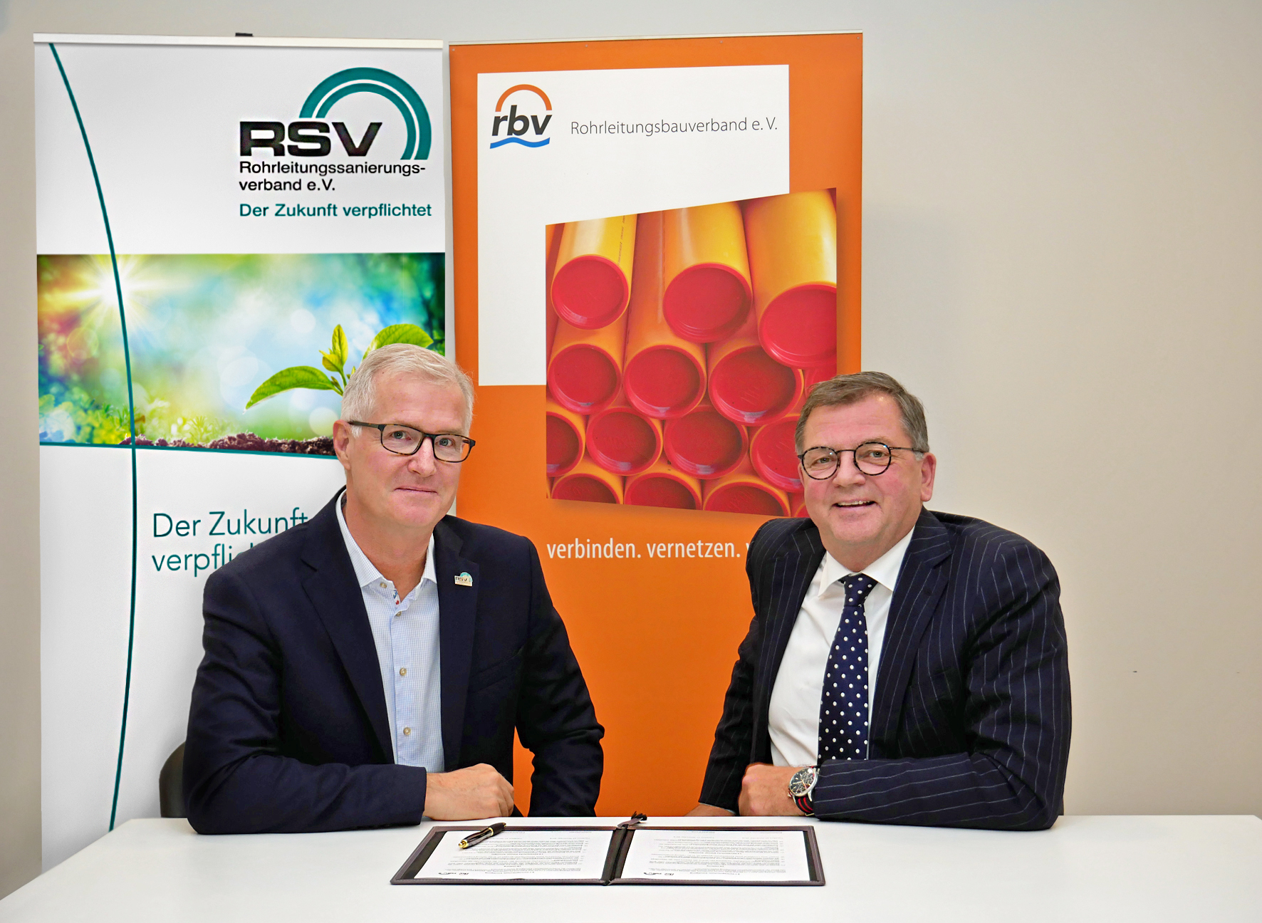 Köln/Hamburg, 29. November - Synergien heben und gemeinsam für die Belange der Rohrleitungsinfrastruktur eintreten – das ist das Ziel der Kooperation zwischen dem Rohrleitungsbauverband (rbv) und dem Rohrleitungssanierungsverband (RSV). Mit einem Vertrag besiegelten beide Verbände nun eine engere Zusammenarbeit.